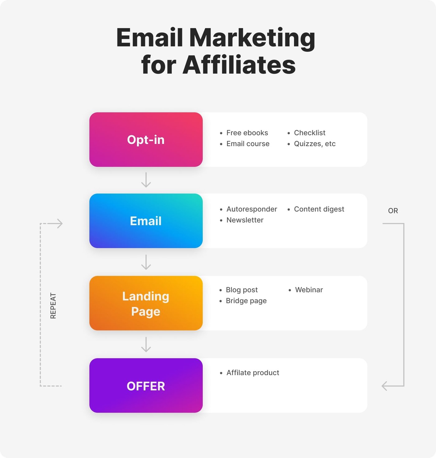 - Parties involved: Affiliate marketer who manages the email list and the merchant whose products are advertised.