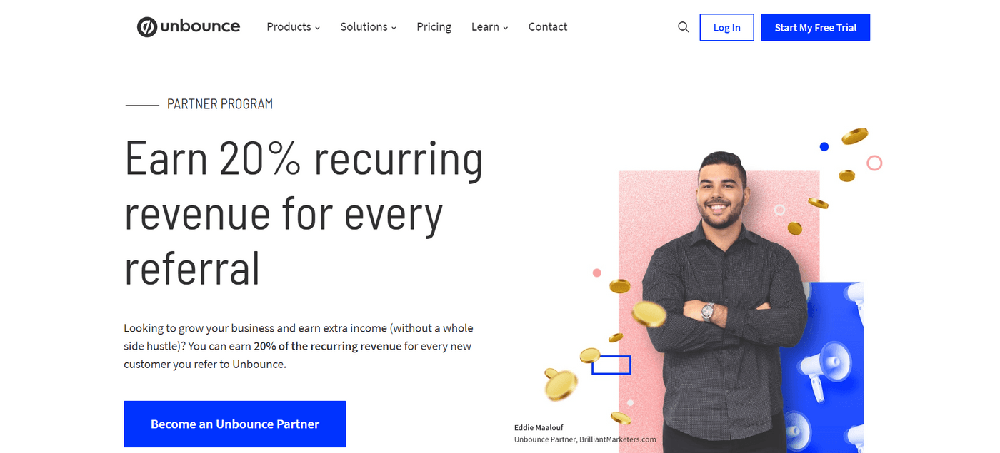 Instapage's affiliate program can be the right pick if you want to promote a service catering to landing pages for online marketing and promotional campaigns. You can earn a 50% revenue share on your referrals' first payment. This is quite an attractive selling point to bring in new users. After the first payment, you will continue to earn but at 30% for lifetime revenue on self-serve plans.