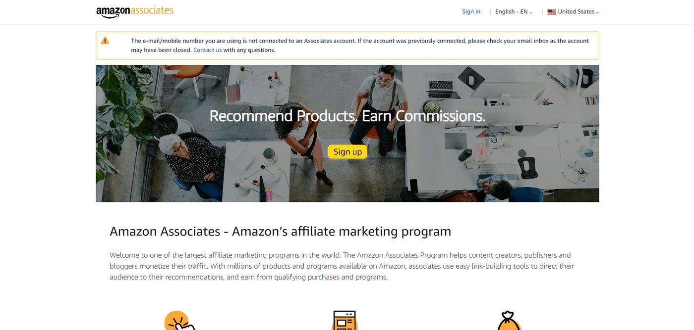 - Sign-up URL - https://affiliate-program.amazon.com/